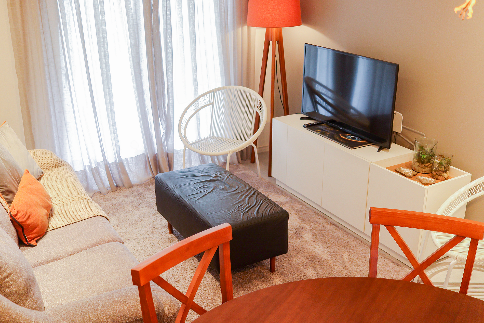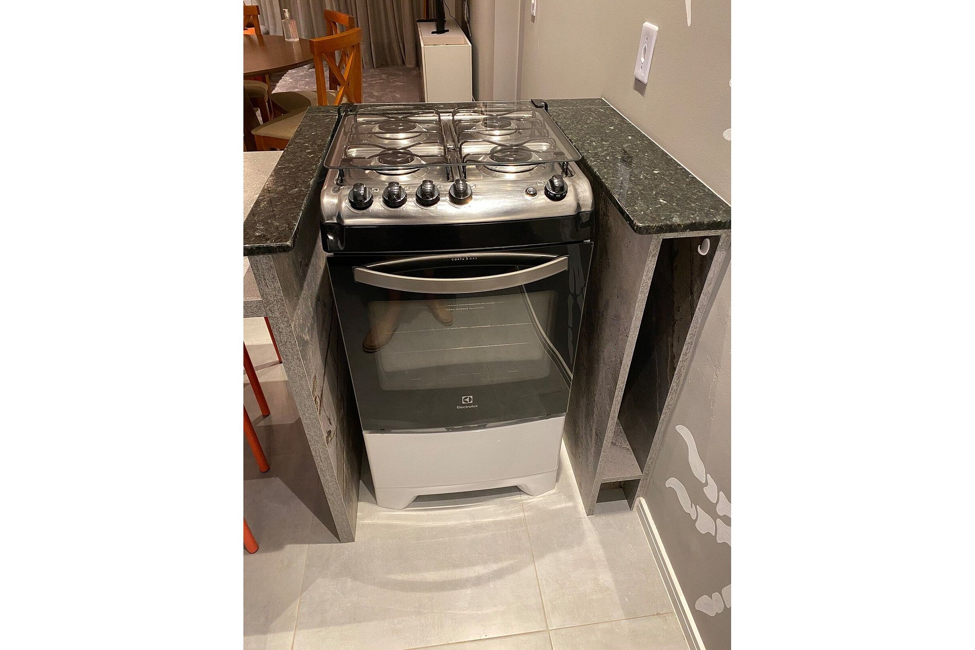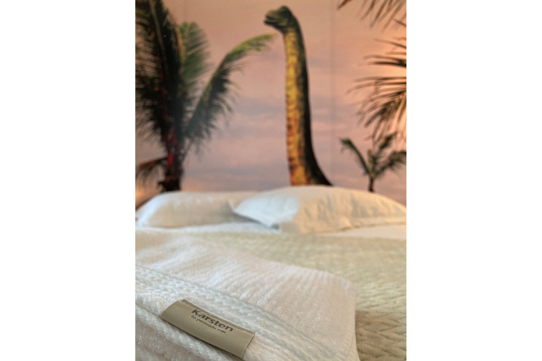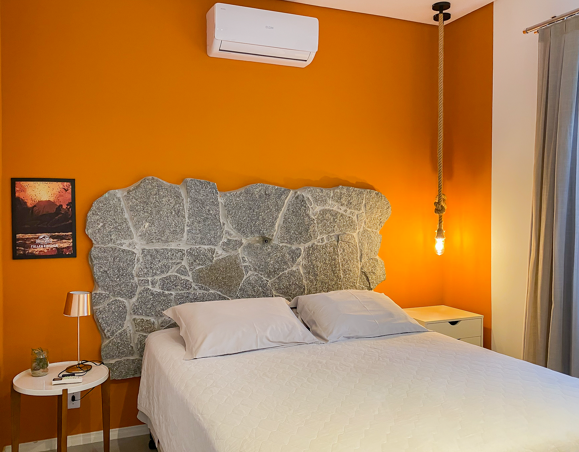 O apartamento é finamente mobiliado, com muito conforto, roupas de cama, toalhas, louças e utensílios de cozinha. Decorado na temática que encanta crianças e adultos, o mundo dos Dinossauros.