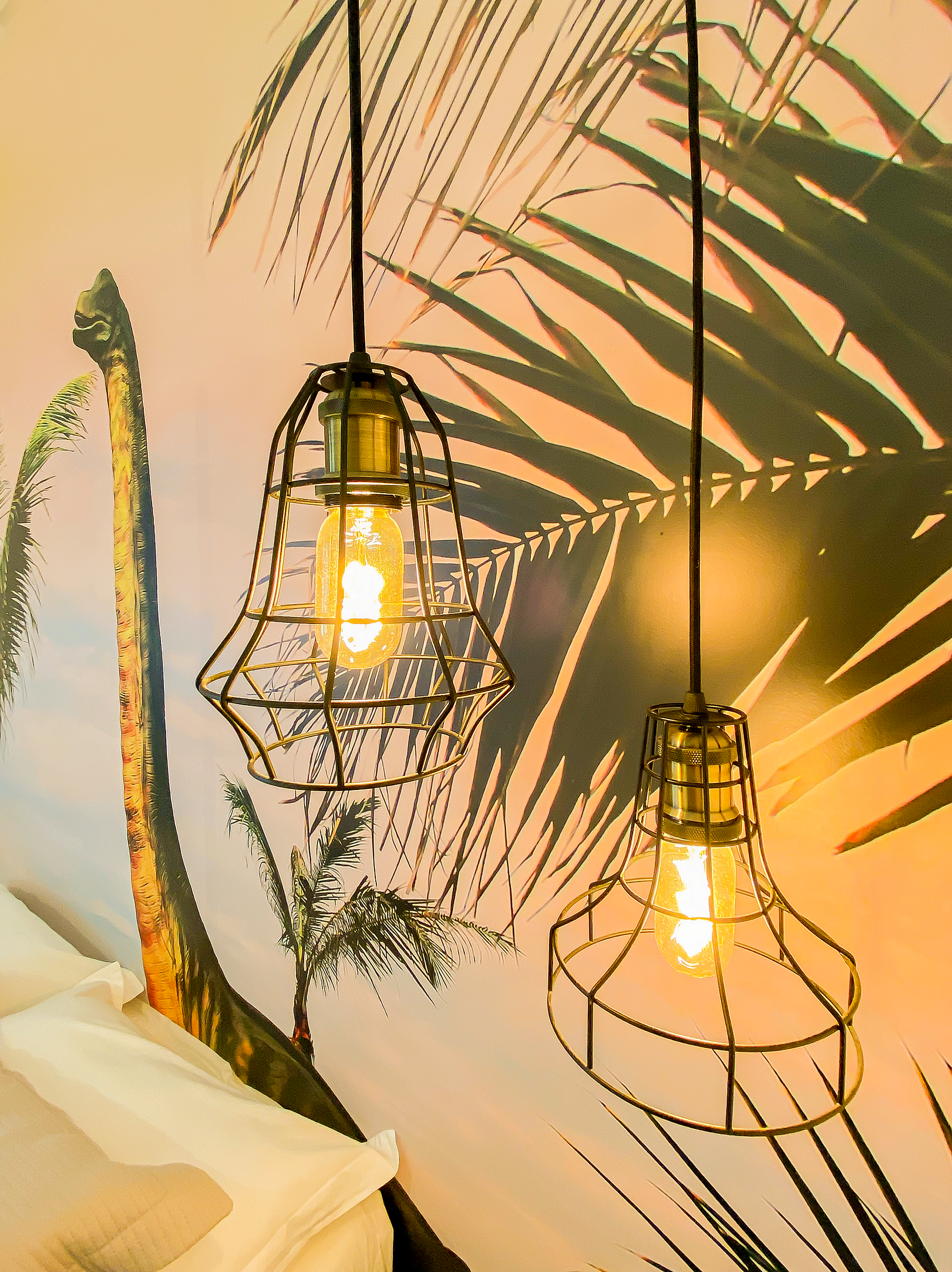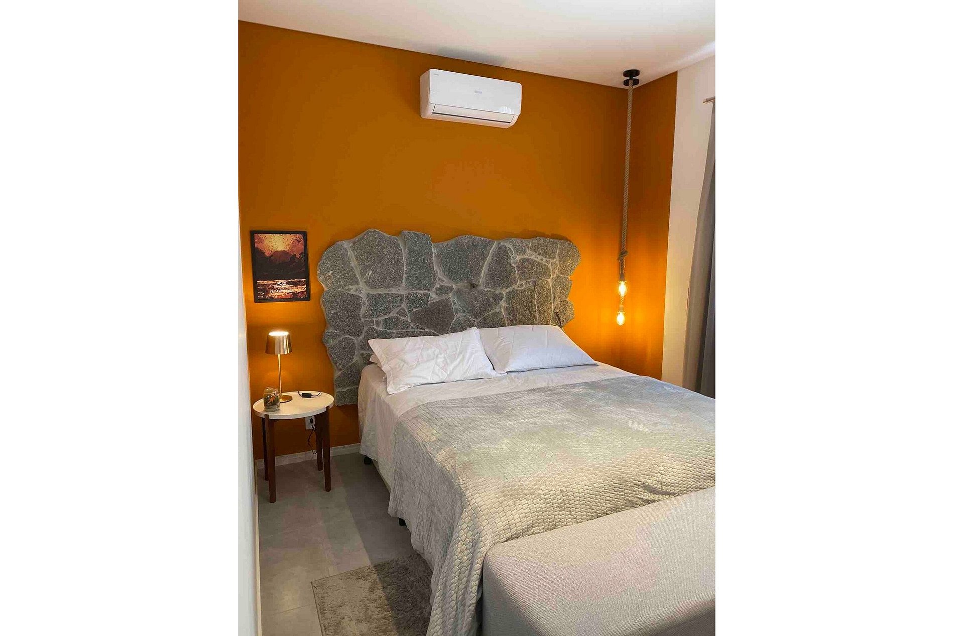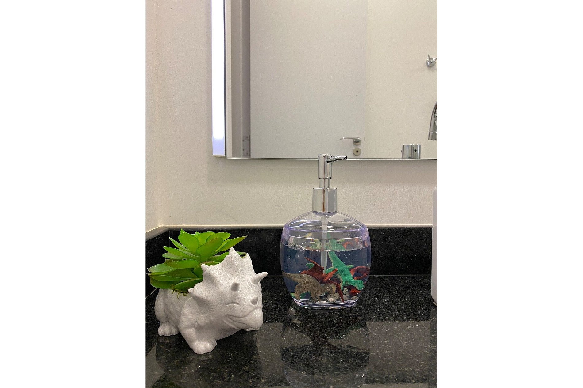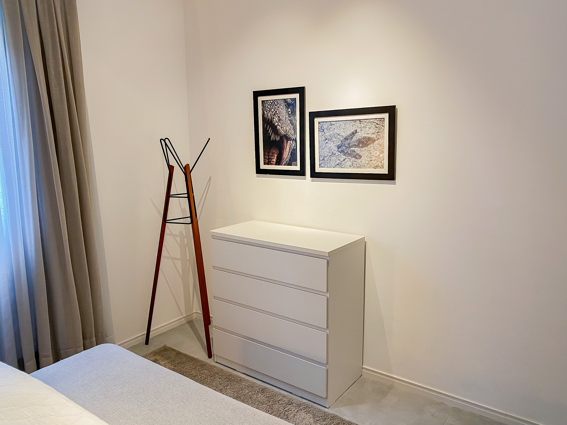O apartamento é finamente mobiliado, com muito conforto, roupas de cama, toalhas, louças e utensílios de cozinha. Decorado na temática que encanta crianças e adultos, o mundo dos Dinossauros.